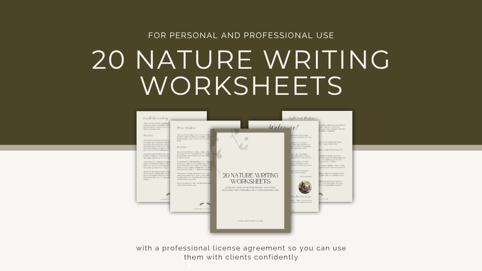 If you're looking for a simple way to reconnect with nature and with yourself–or if you want ready-to-use resources that you can share with your students or clients–get instant access to this collection of carefully crafted, nature-based writing exercises.